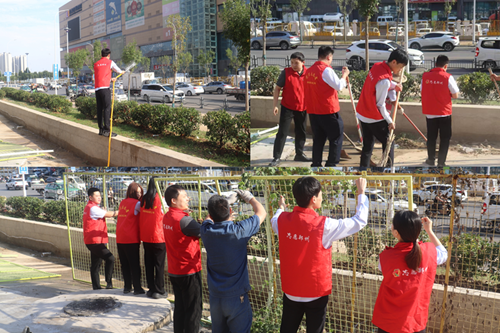9月24日,新商城運營公司黨支部組織開展“環(huán)境衛(wèi)生整治”主題黨日活動,弘揚“奉獻、友愛、互助、進步”的志愿精神。活動中,黨員志愿者身著紅馬甲,協(xié)作拆除商城外圍陳舊圍擋,清理地面雜草垃圾,并拿起水管,給周邊綠化帶中的植物澆水,草叢在灌溉下愈顯生機。