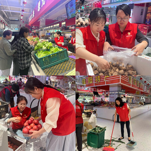 黨員志愿者分組前往市投集市丹楓路市場、未來路市場進行志愿服務(wù)。在未來路市場,志愿者協(xié)助檢查、清掃、整理市場衛(wèi)生和攤位,幫助商戶售賣菜品,維護農(nóng)貿(mào)市場整體秩序及衛(wèi)生環(huán)境。在丹楓路市場,黨員志愿者一大早便來到市場,協(xié)助市場早餐商戶為一線環(huán)衛(wèi)工人免費派贈“愛心早餐”,讓環(huán)衛(wèi)工人感受到了城市的溫度和市投集市的溫暖。隨后,黨員志愿者將市場內(nèi)外地面環(huán)境進行全面清掃,擦洗攤位、墻面等,還對電動車、共享單車停放區(qū)進行了擺放整理,讓市場內(nèi)部環(huán)境煥然一新。提升了市場文明形象。